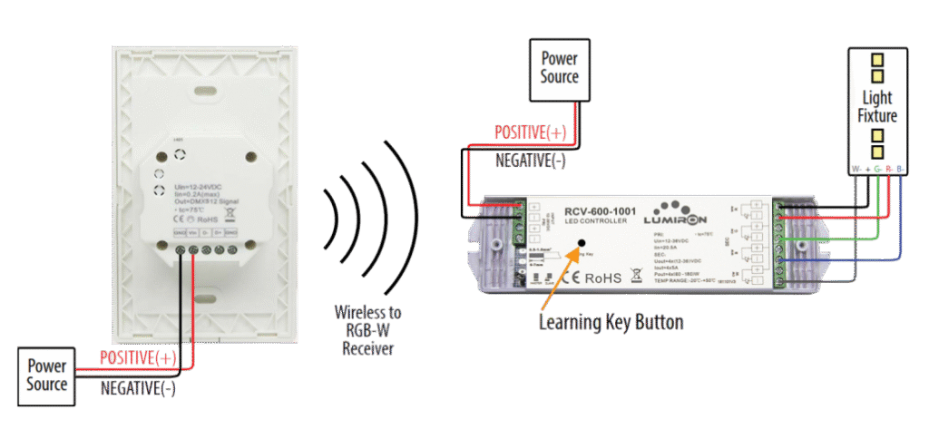 The 3 Zone Wall Mount RGBW LED Controller Receiver has been created to bring even more functionality and to enjoy controlling up to 3 separate lighting zones either independently or simultaneously. It can easily be used by wirelessly connecting to non-DMX LED fixtures operating in RGB-W mode.